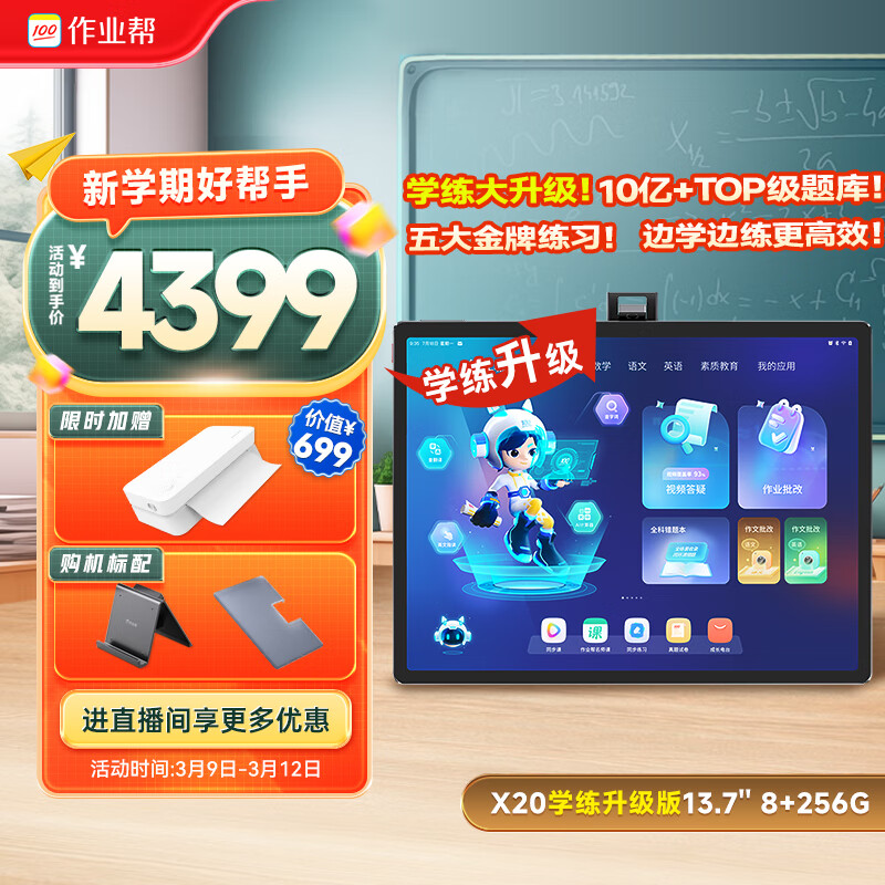 作业帮AI学习机X20学练升级 小学到高中全科作业辅导学习平板电脑教材同步学家教机 13.7''护眼屏8+256G价格:4399.00元!