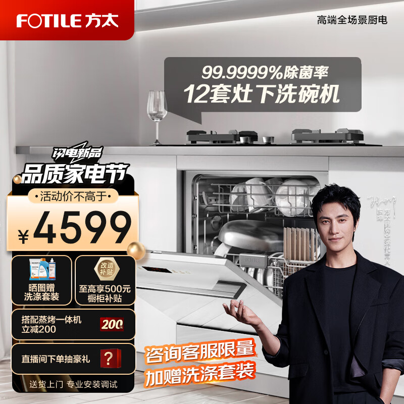 方太(FOTILE)洗碗机嵌入式家用 高能气泡洗 12套大容量 灶下洗碗机 一级水效 30min超快洗02-N1价格:4599.00元!