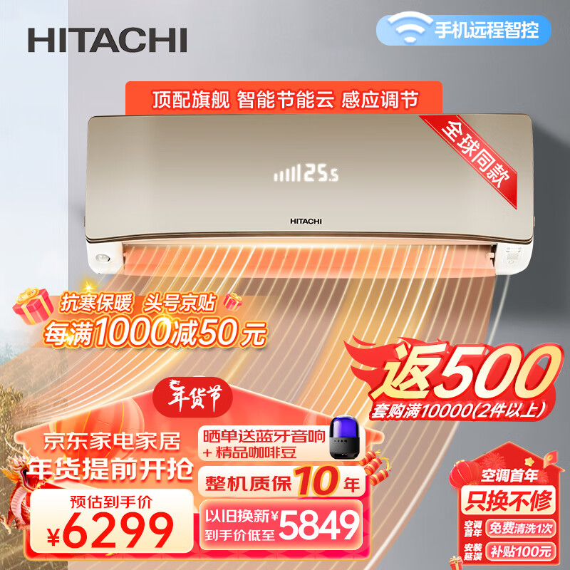 日立白熊君新1级能效 1.5匹全直流变频冷暖壁挂式智能wifi 智感睡眠以旧换新RAK/C-SH12PHBPCG香槟金价格:6599.00元!