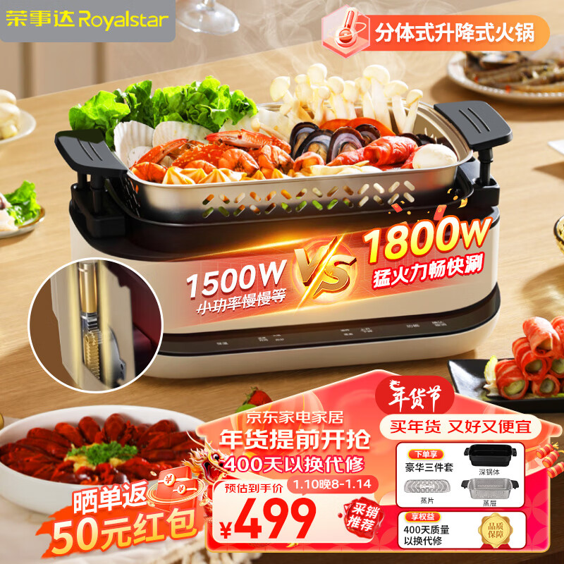 荣事达(Royalstar)升降电火锅自动6L火锅锅电锅双层分体式多功能锅家用涮烤火锅锅具RHG-SJ60E【一键升降】价格:499.00元!