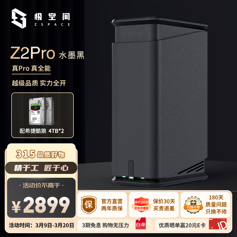 极空间私有云Z2Pro 8T四核2盘位NAS家庭个人云网络存储服务器手机平板扩容适用iPhone15 水墨黑价格:3299.00元!