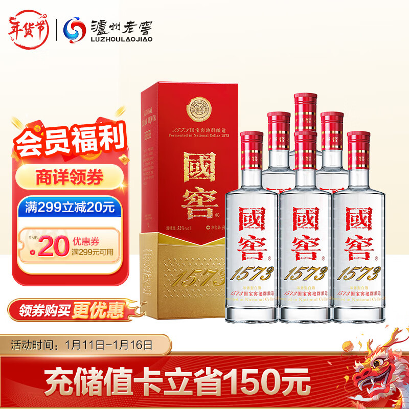 泸州老窖 国窖1573 浓香型 高度白酒 52度500ml*6瓶 经典整箱装(商务送礼)价格:6000.00元!
