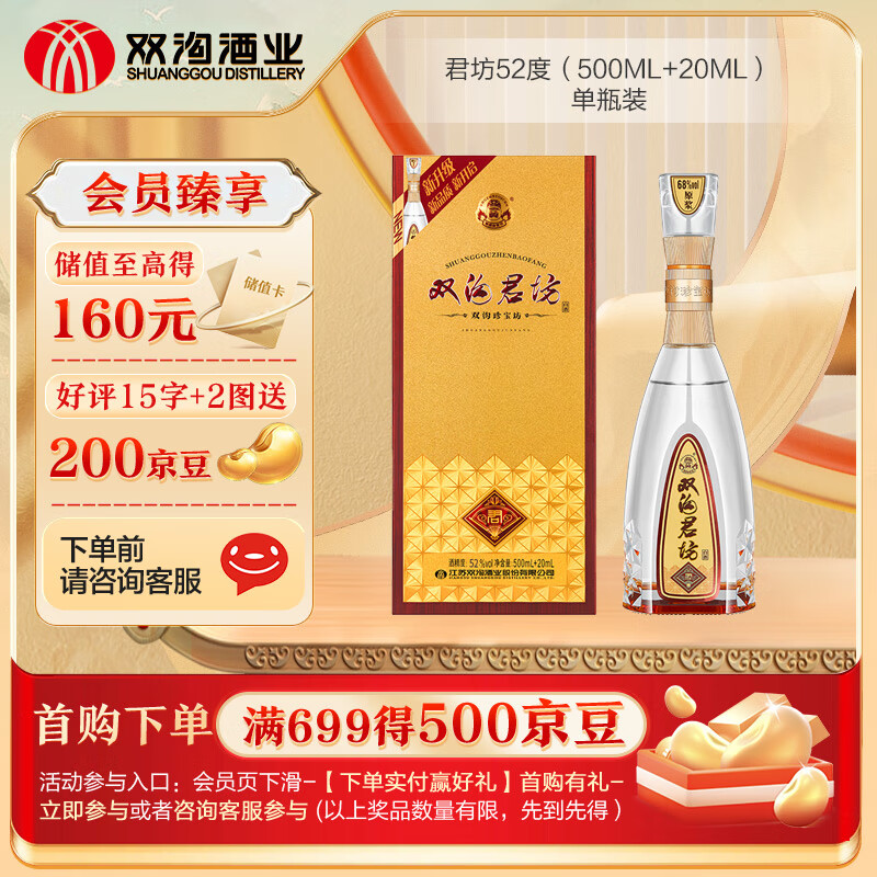 双沟 珍宝坊君坊 52度 (500ml+20ml) 单瓶装 浓香型白酒价格:158.00元!