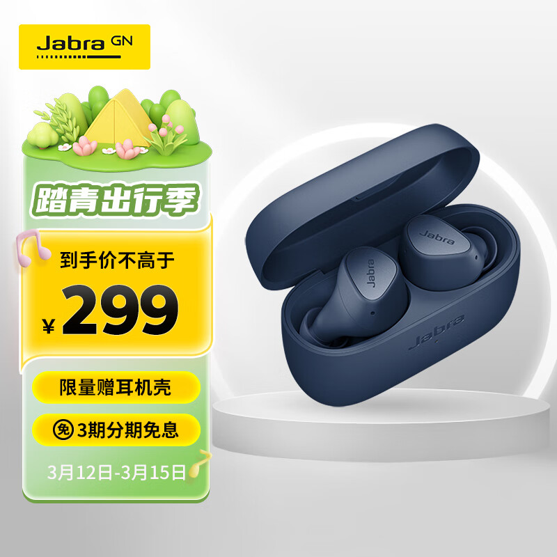 捷波朗(Jabra)Elite3 真无线蓝牙降噪耳机 蓝牙5.2 强劲续航(65t升级版E3) 安卓苹果音乐耳机 海军蓝色价格:299.00元!