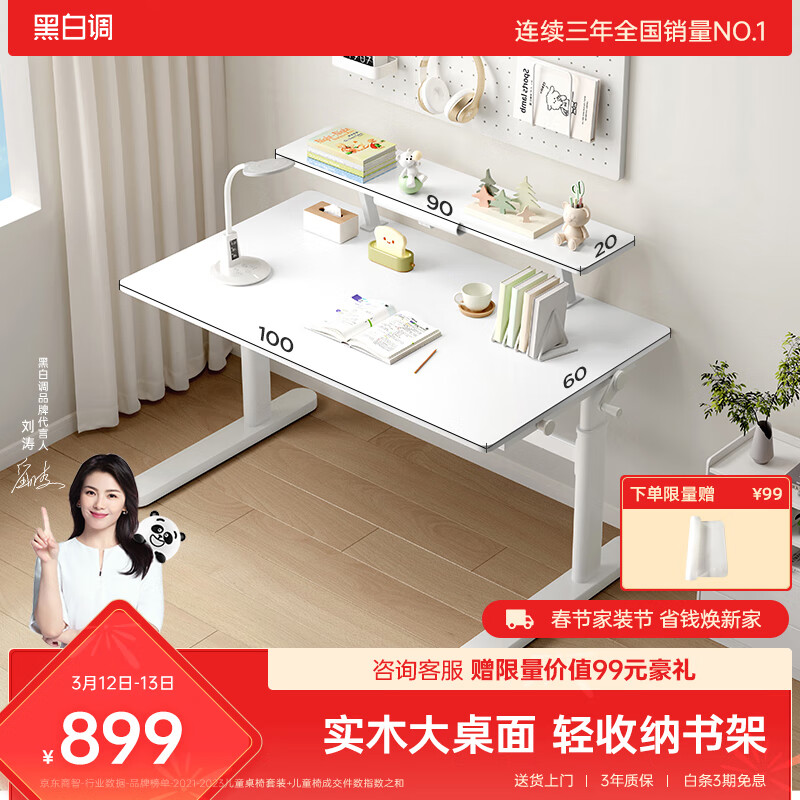 黑白调学习时光A1学习桌【带书架可升降大桌面 环保实木】儿童书桌电脑桌 1m白价格:1899.00元!