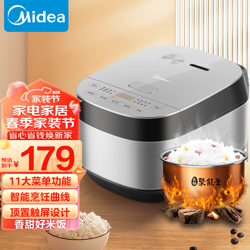 美的(Midea)智能电饭煲小容量电饭锅家用3L顶置金属拉丝机身智能预约蒸米饭锅RE325(2-6人)价格:179.00元!