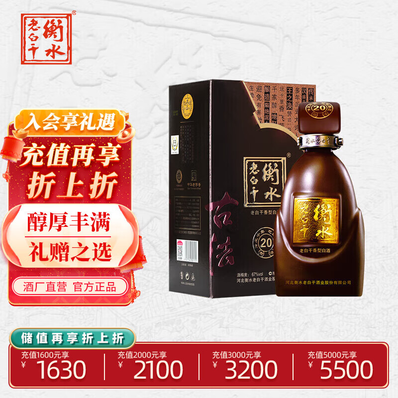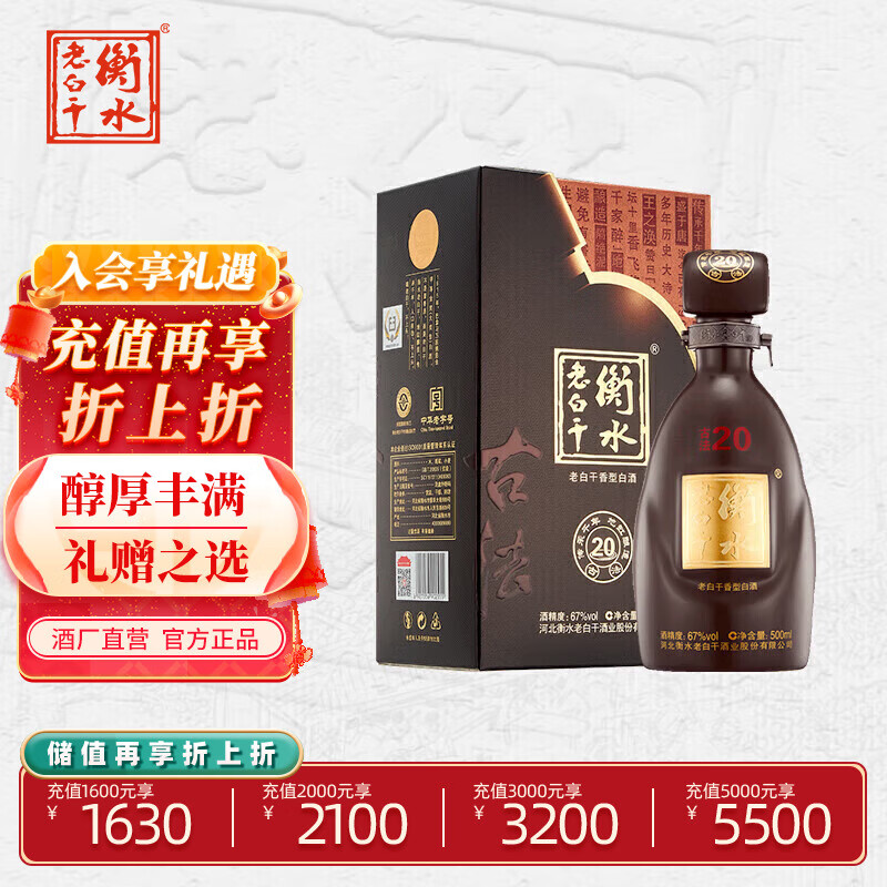 衡水老白干 古法20酒 老白干香型白酒 67度 500ml 单瓶装 纯粮价格:549.00元!