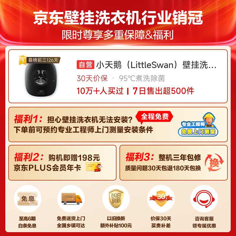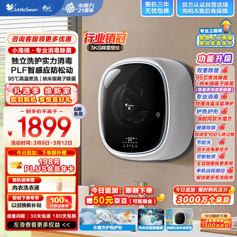小天鹅(LittleSwan)3公斤壁挂洗衣机 小海绵 迷你洗衣机全自动 内衣裤洗衣机 婴儿挂壁式 水魔方 高温除菌 TG30V860E价格:1899.00元!