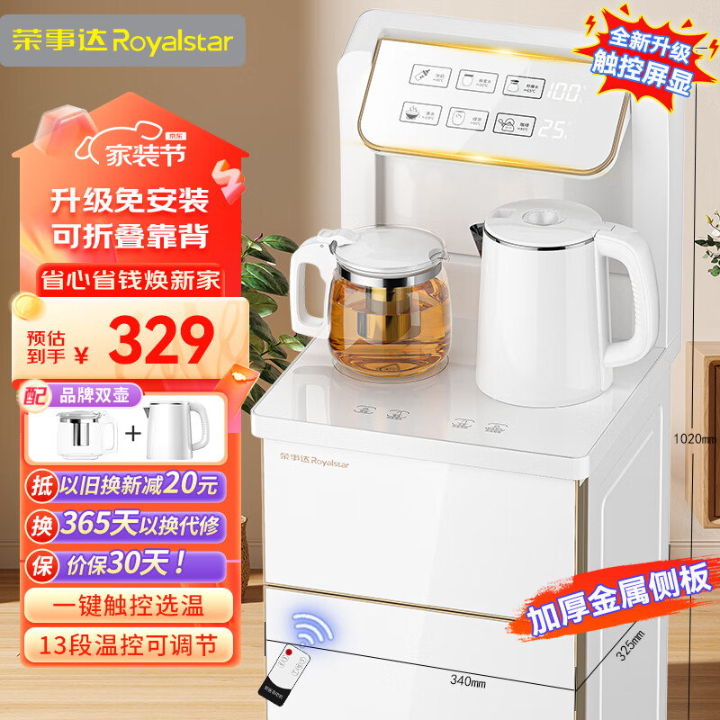 荣事达(Royalstar)茶吧机家用免安装智能遥控可折叠多功能大屏幕触控立式饮水机白色温热型CY811价格:329.00元!