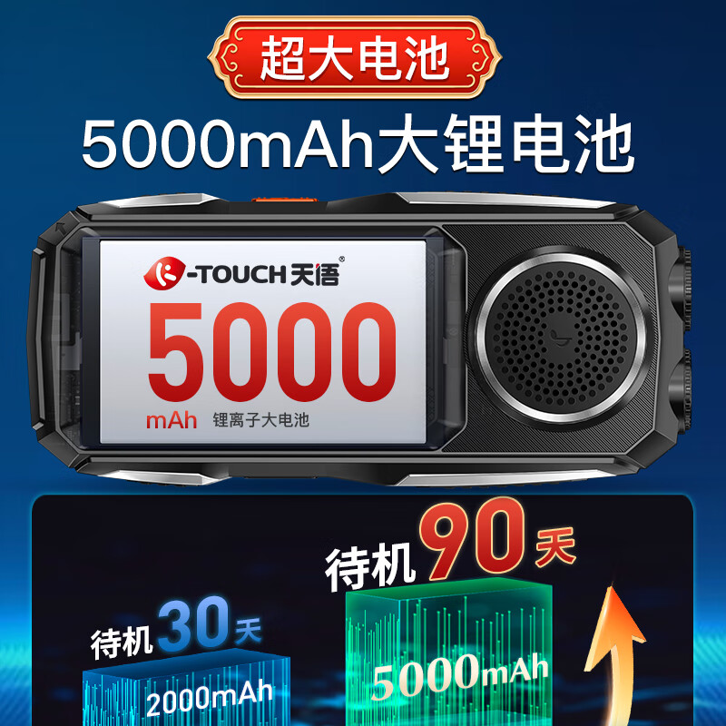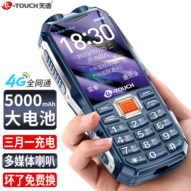 天语(K-Touch) Q8 通4G三防老年人手机超长待机大屏大声直板移动联通电信广电学生按键老人手机 牛仔蓝价格:259.00元!