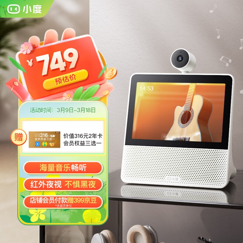 小度智能屏X9 会员版 云台360度摄像 红外夜视 视频通话 蓝牙音箱触屏音响 家庭影院 小孩陪伴老人看护价格:749.00元!