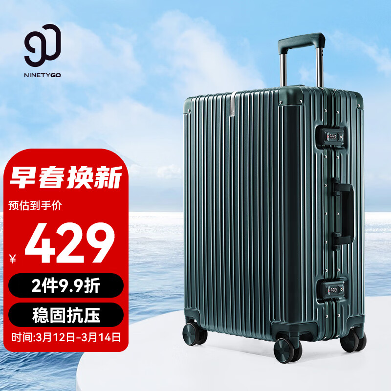 90分PC旅行箱轻质铝框行李箱防刮商旅两用拉杆箱20英寸登机箱橄榄绿价格:429.00元!