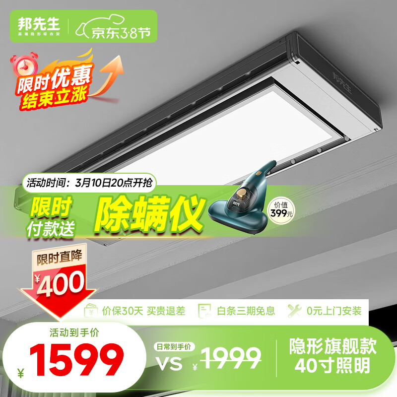 邦先生电动晾衣架智能阳台全自动升降超薄隐形伸缩嵌入式凉晒衣杆机M33A价格:1999.00元!
