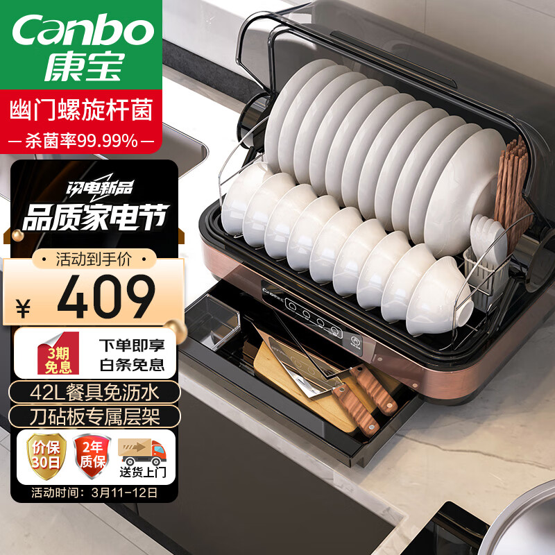 康宝(Canbo)消毒柜家用台式 消毒碗柜立式小型厨房柜 碗筷餐具刀架婴儿奶瓶烘干紫外线免沥水消毒器ZTD42-KH1Z价格:509.00元!