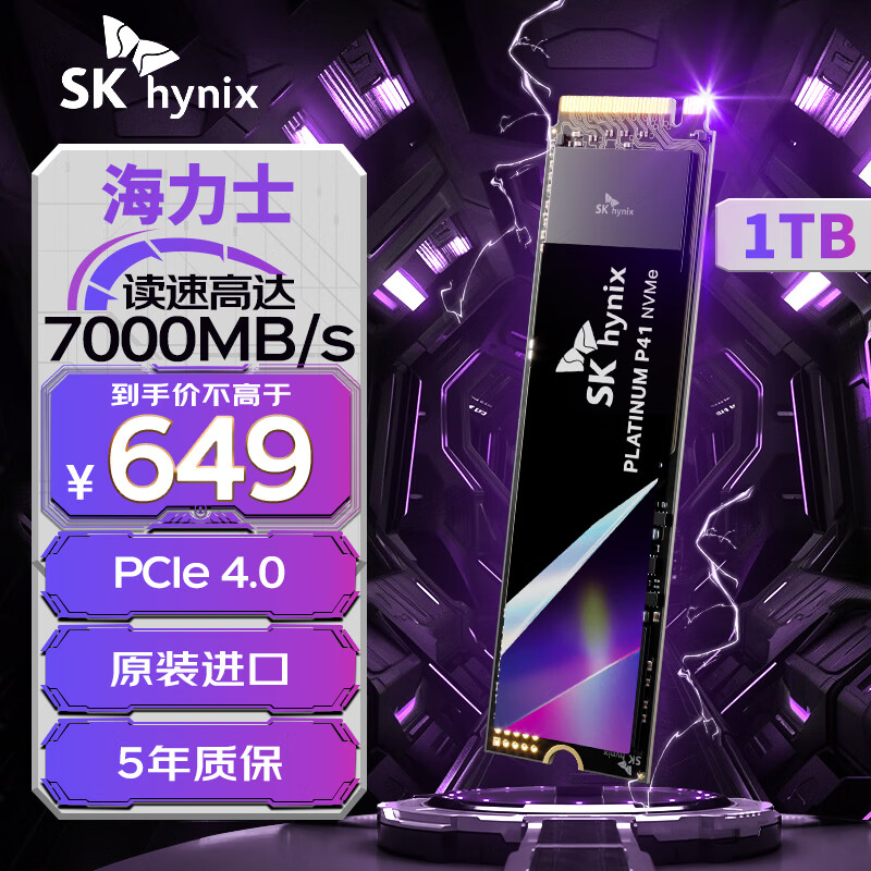 SK HYNIX海力士P41 1TB SSD固态硬盘 M.2接口(NVMe协议 PCIe4.0*4) 电脑台式机笔记本硬盘高端旗舰价格:649.00元!
