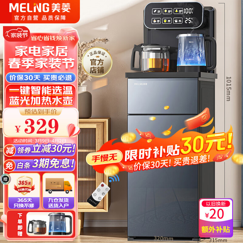 美菱(MeiLing)茶吧机 家用饮水机多功能智能遥控双出水口可下置水桶立式 轻奢大屏触控一键选温MY-C553价格:359.00元!