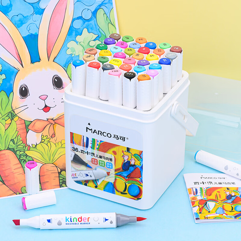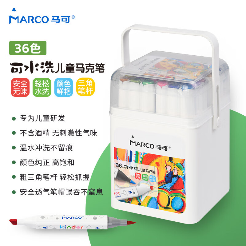 马可(MARCO)水性马克笔36色 双头水彩笔水性画画笔套装学生文具1800-36PB价格:89.90元!