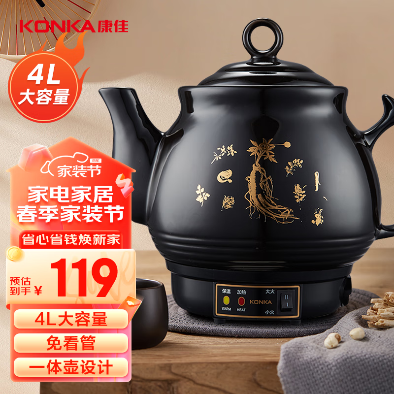 康佳(KONKA)养生壶 煎药壶 中药壶熬药罐 全自动陶瓷炖药锅电子药煲煎药机 家用汤锅4L KJY-W40H06价格:119.00元!