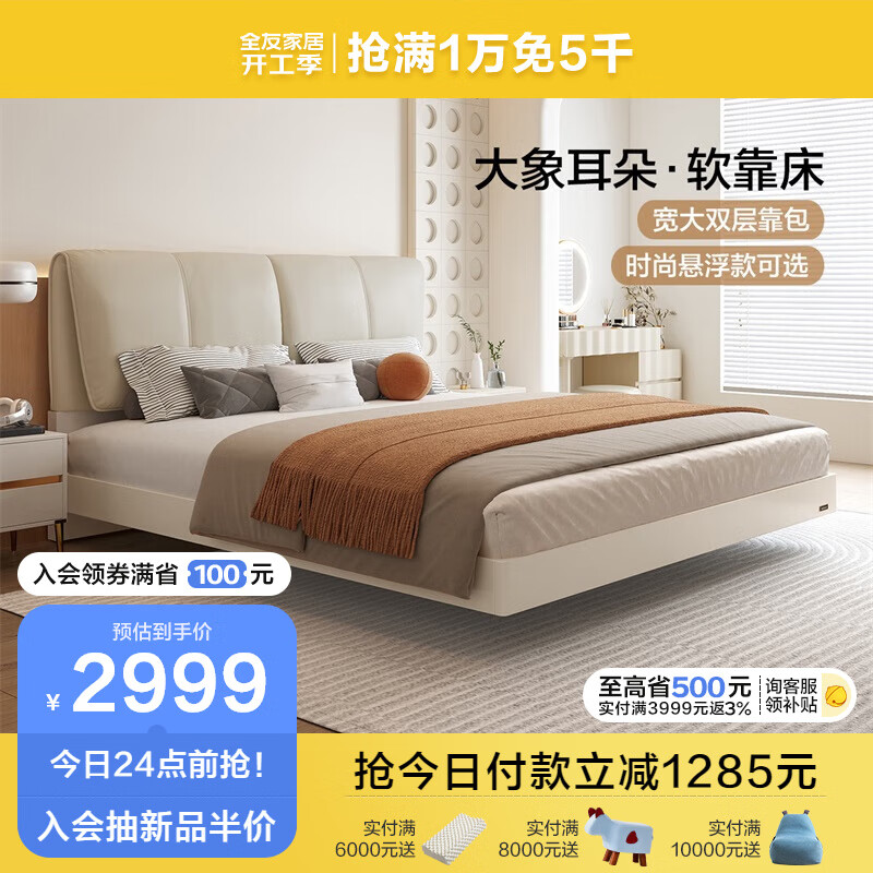全友家居 床悬浮床双人床1.5米大象耳朵软床主卧大床婚床家具129303价格:4284.29元!