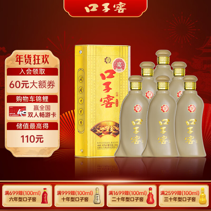 口子窖五年型 兼香型 白酒 40.8度 400ml*6瓶 整箱装 粮食酒 年货送礼价格:729.00元!