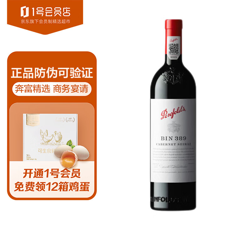 奔富(Penfolds)BIN389赤霞珠设拉子干红葡萄酒 官方防伪带码 750ml 1号会员店价格:659.00元!
