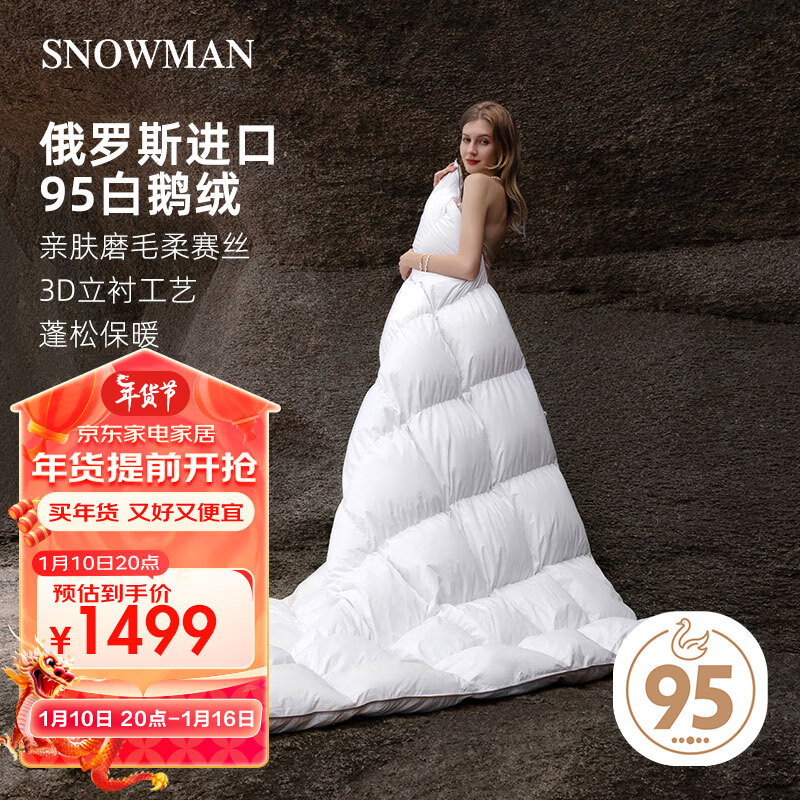 斯诺曼抗菌柔赛丝俄罗斯95%白鹅绒被羽绒冬被 填充1100g220x240cm【白】价格:2199.00元!