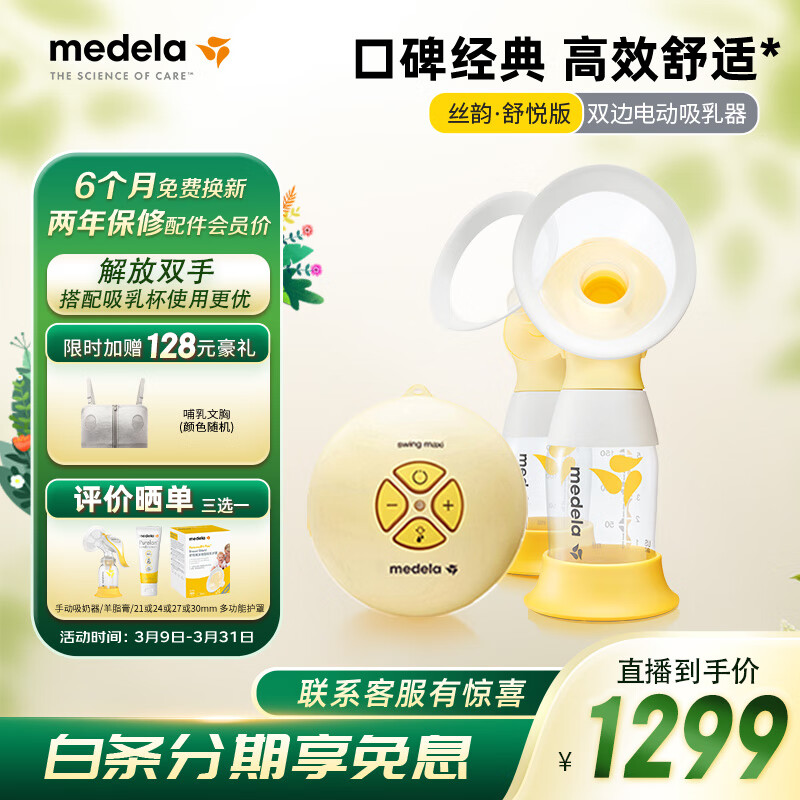 美德乐(Medela)吸奶器电动吸奶器双边吸乳器母乳集奶器挤奶器丝韵·翼舒悦版价格:1134.00元!