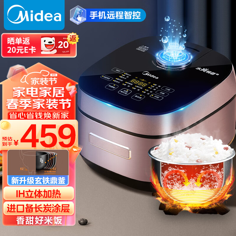 美的(Midea)电饭煲Pro电饭锅4L3-8人 智能IH水亮煲系列微压焖香金属机身炫彩触屏多功能米饭锅MB-HS410价格:499.00元!