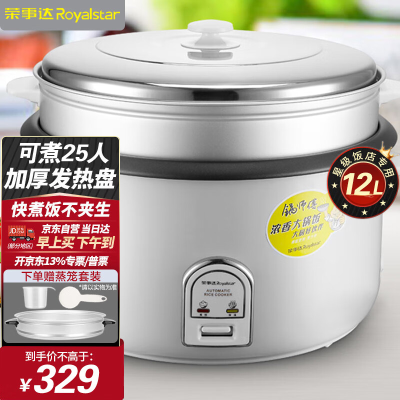 荣事达(Royalstar)商用电饭煲电饭锅传统老式酒店食堂饭店商用12L大容量带蒸笼RZ-120B价格:329.00元!