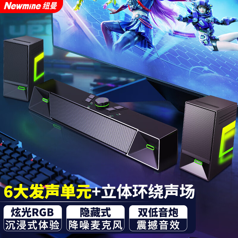 纽曼(Newmine)V6 电脑音响音箱台式机笔记本蓝牙5.3 带麦克风家用 炫彩RGB桌面游戏电竞立体声音响套装 黑色价格:259.00元!