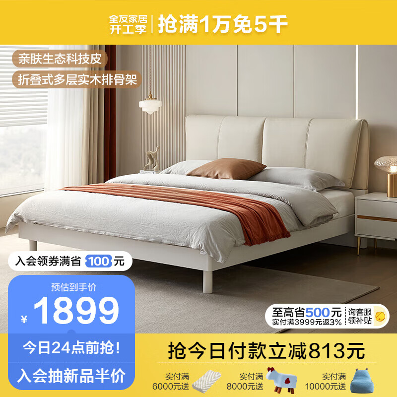 全友家居 床简约风双人床国民家居大象耳朵皮艺床1.5米主卧大床129303价格:2712.86元!