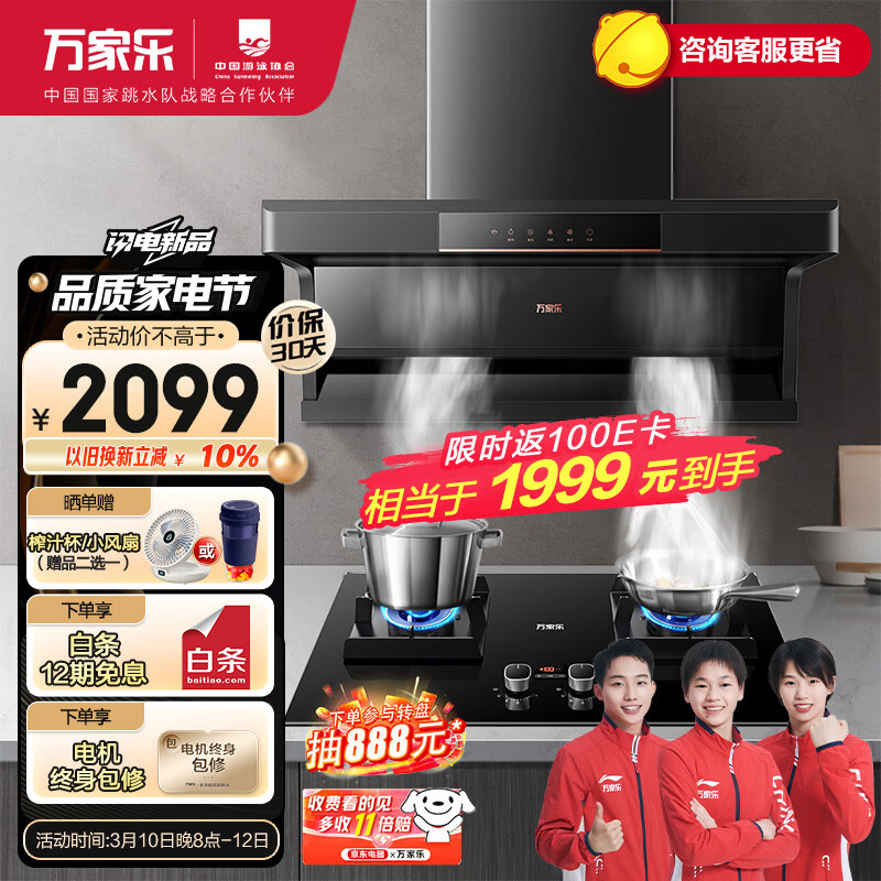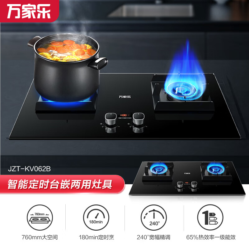 万家乐 抽油烟机 顶侧双吸油烟机 智能定时烟灶套装22m3/min大吸力挥手油烟机灶具套装AK5+KV062B天然气价格:2299.00元!
