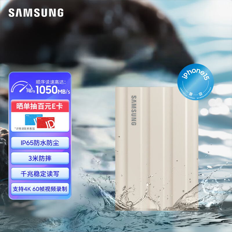 三星(SAMSUNG)2TB Type-c接口 移动固态硬盘(PSSD)T7 Shield 月幕白 NVMe传输速度1050MB/s IP65三防保护价格:1279.00元!