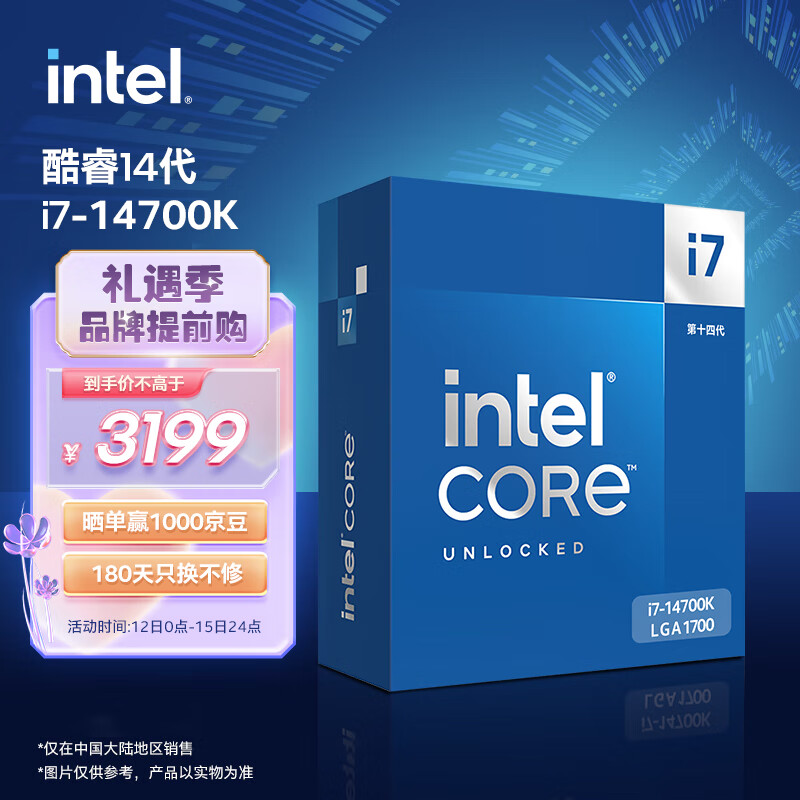 英特尔(Intel) i7-14700K 酷睿14代 处理器 20核28线程 睿频至高可达5.6Ghz 33M三级缓存 台式机盒装CPU价格:3199.00元!
