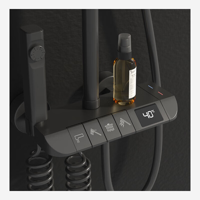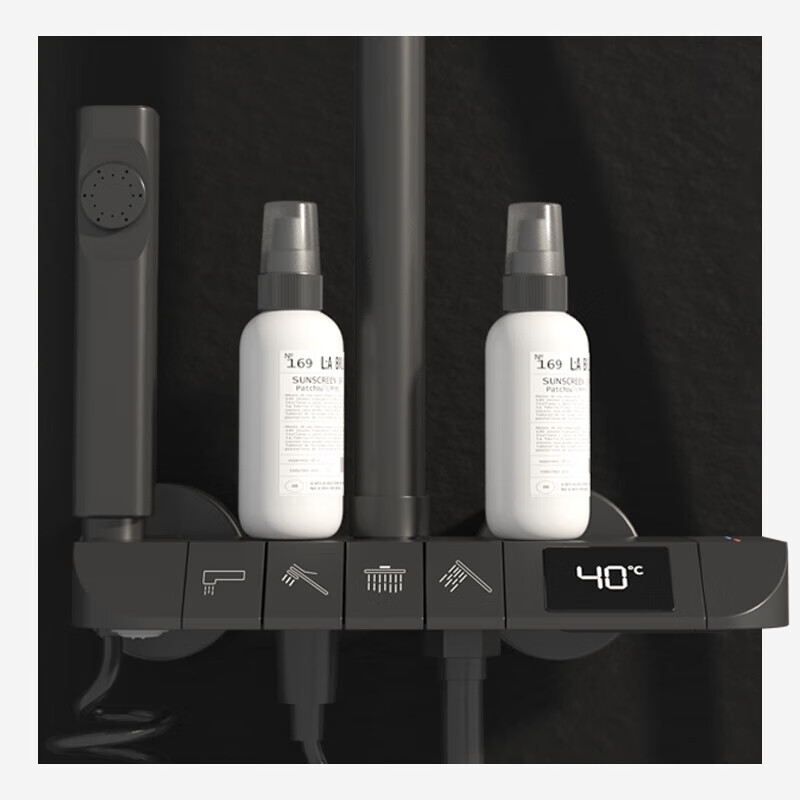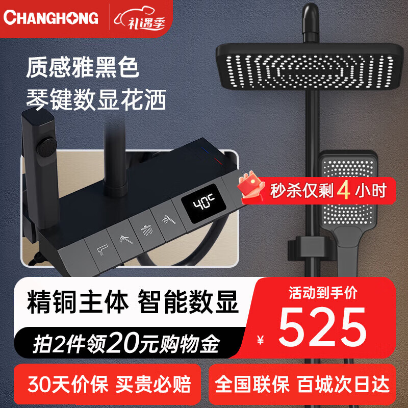 长虹(CHANGHONG)淋浴花洒套装智能数显增压花洒全套家用沐浴器黑色坦克款花洒价格:755.00元!