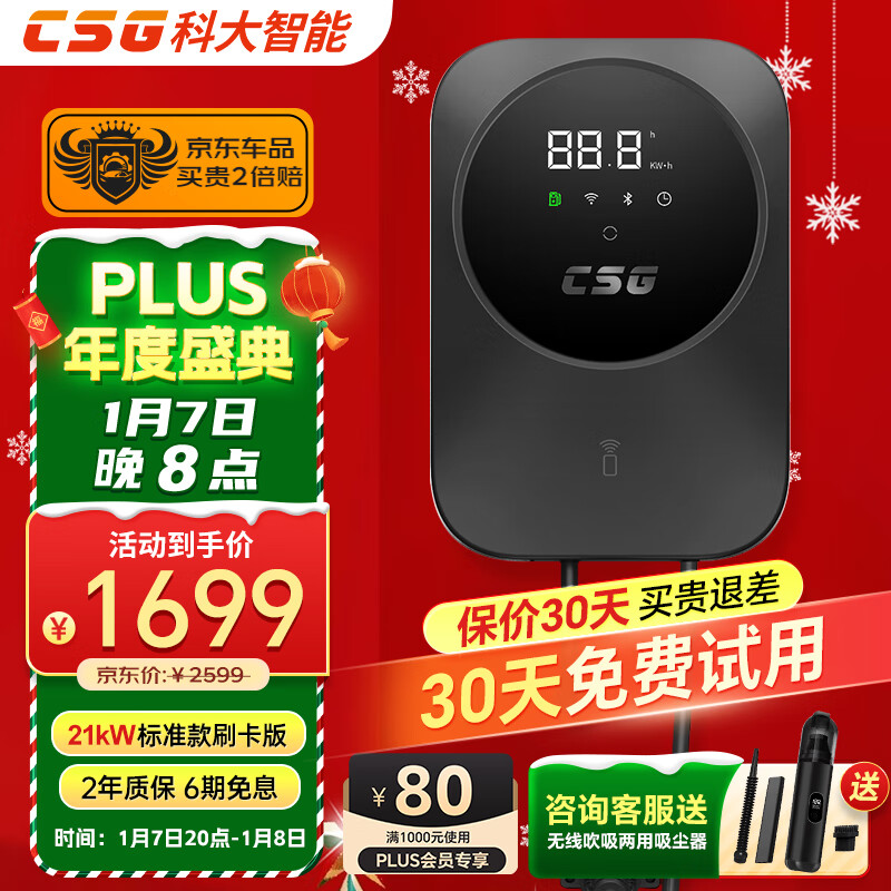 CSG科大智能家用汽车充电桩21kw新能源交流充电桩适用特斯拉比亚迪极氪小鹏埃安大众蔚来问界理想零跑奔驰价格:2599.00元!