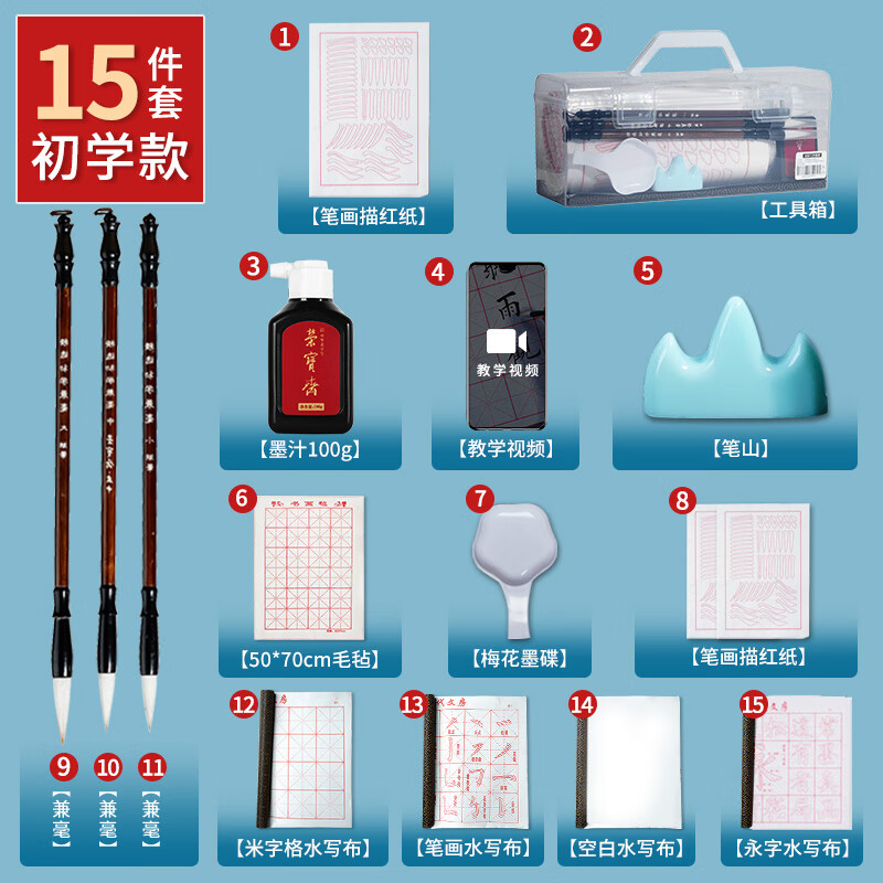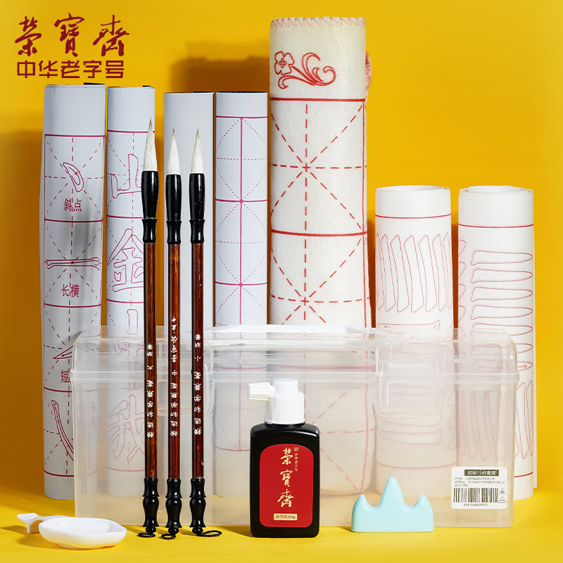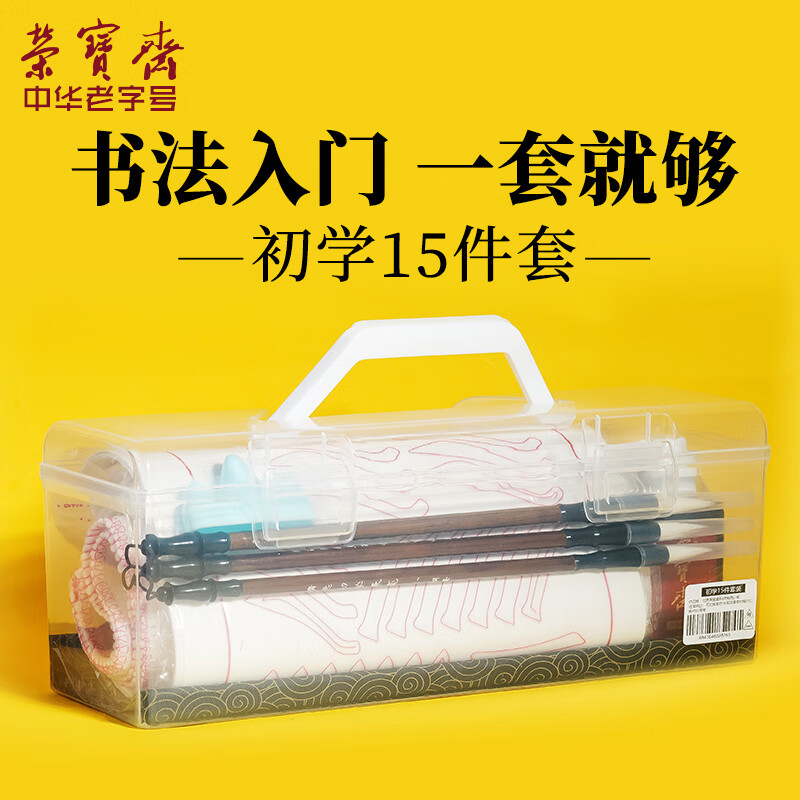 荣宝斋兼毫毛笔套装初学者文房四宝儿童小学生入门书法字帖国画练习笔墨纸砚软笔便携式套装 初学者15件套价格:35.00元!