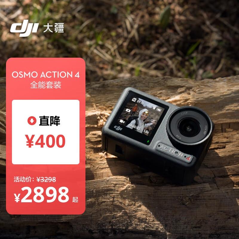 大疆 DJI Osmo Action 4 全能套装 灵眸运动相机 摩托车山地公路骑行潜水户外vlog相机 OA4便携摄像机价格:2898.00元!