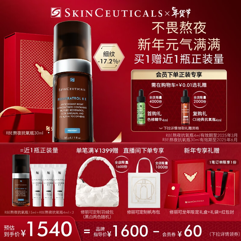 修丽可RBE熬夜精华液30ml 护肤品抗氧老淡纹修护化妆品生日礼物送女友价格:1600.00元!