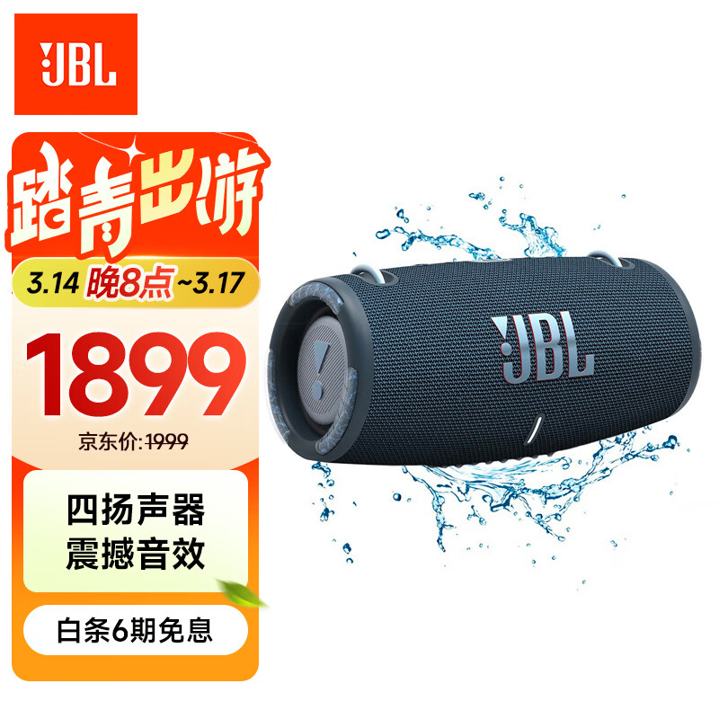 JBL XTREME3 音乐战鼓三代 便携蓝牙音箱 户外音箱 电脑音响 四扬声器系统 防尘防水 礼物音响 蓝色价格:1999.00元!