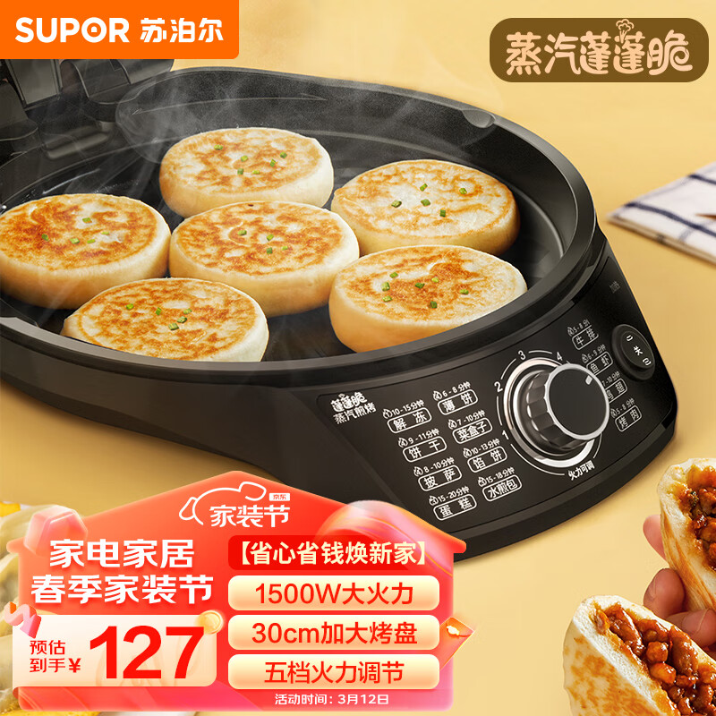 苏泊尔(SUPOR)电饼铛 电饼档煎烤机烙饼锅早餐机 火力可调蒸汽烤盘家用烤肉薄饼机加大加深 JD31A847A-Q价格:127.00元!