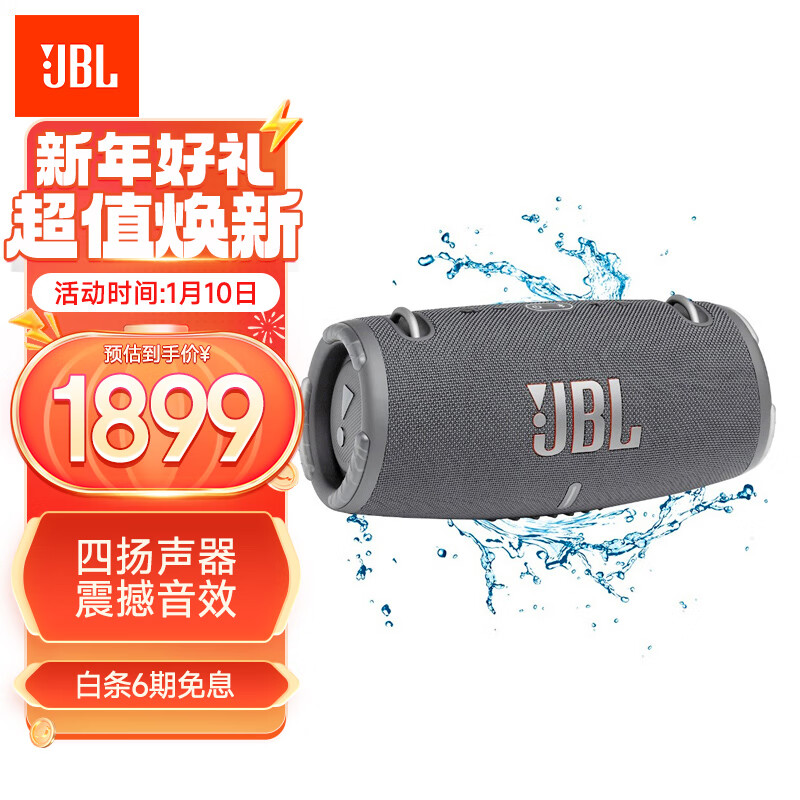 JBL XTREME3 音乐战鼓三代 便携蓝牙音箱 户外音箱 电脑音响 低音炮 四扬声器系统 防尘防水 灰色价格:2499.00元!