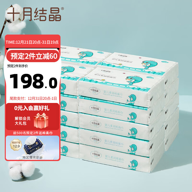 十月结晶婴儿专用软抽纸面巾柔纸巾手口专用100抽*20包价格:99.00元!