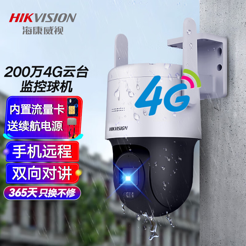 HIKVISION海康威视4G摄像头监控器家用室内外手机远程200万可插卡语音对讲防水2DE3Q120MY带256G内存卡价格:724.00元!