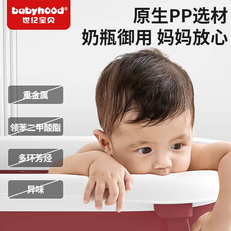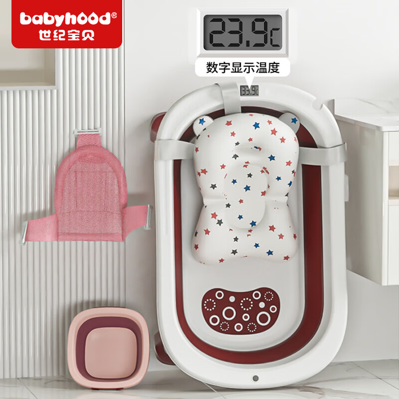 世纪宝贝(babyhood)婴儿洗澡盆 感温防滑折叠浴盆+浴垫+浴网+洗脸盆4件套 323粉色价格:158.00元!