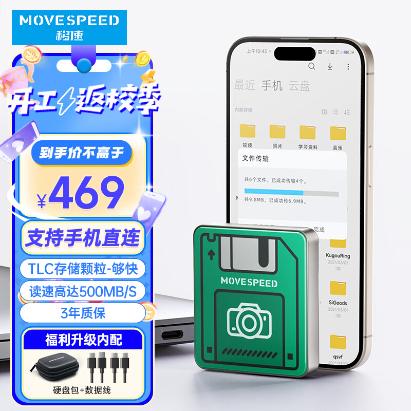 移速(MOVE SPEED)1TB 移动固态硬盘 (PSSD) ssd移动硬盘 支持手机直连 TLC颗粒读数550MB/S 小巧 外接大容量价格:499.00元!
