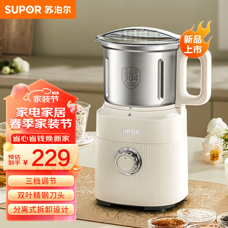 苏泊尔(SUPOR)磨粉机 家用辅食机 多功能料理机干粉机 五谷杂粮粉碎机大容量精研细腻磨粉机SMF2004价格:229.00元!