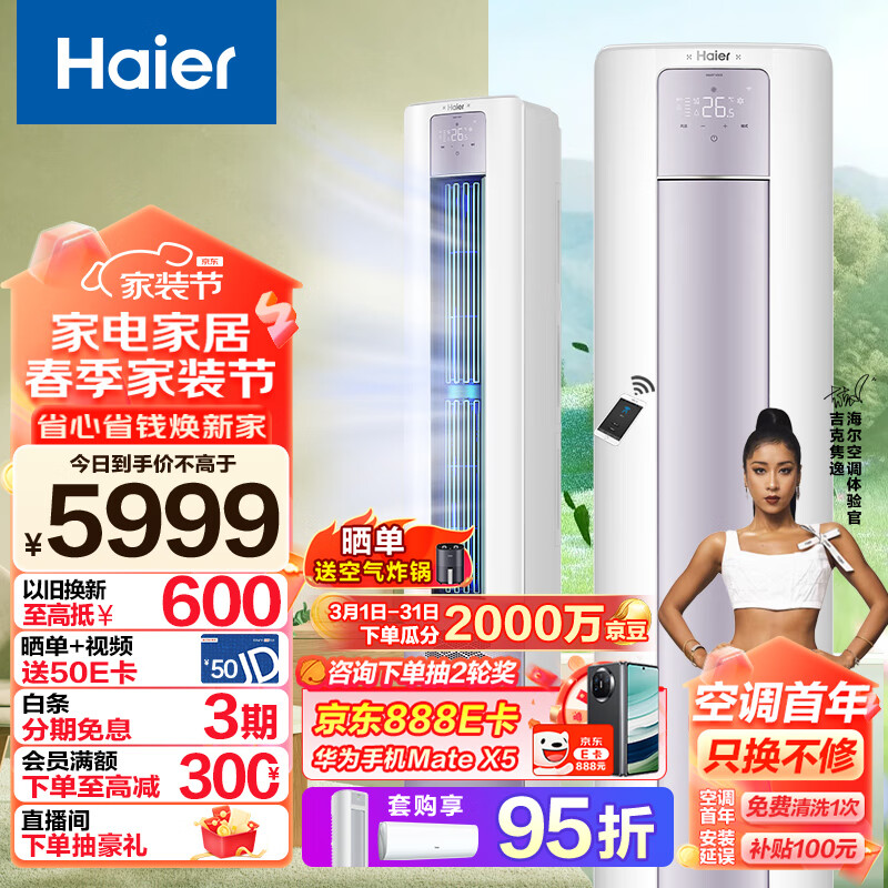 海尔(Haier)新一级能效 3匹 雷神者II 变频冷暖 客厅空调立式柜机 新风空调 KFR-72LW/28LBC81U1 以旧换新价格:5999.00元!