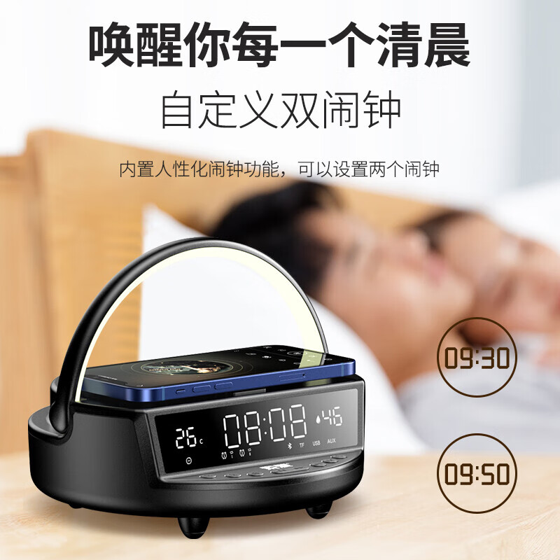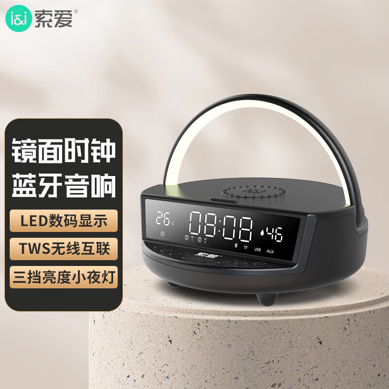 索爱(soaiy)S39蓝牙音箱智能闹钟时钟家用便携式多功能小音响重低音创意床头氛围夜灯送女友礼物黑色价格:299.00元!