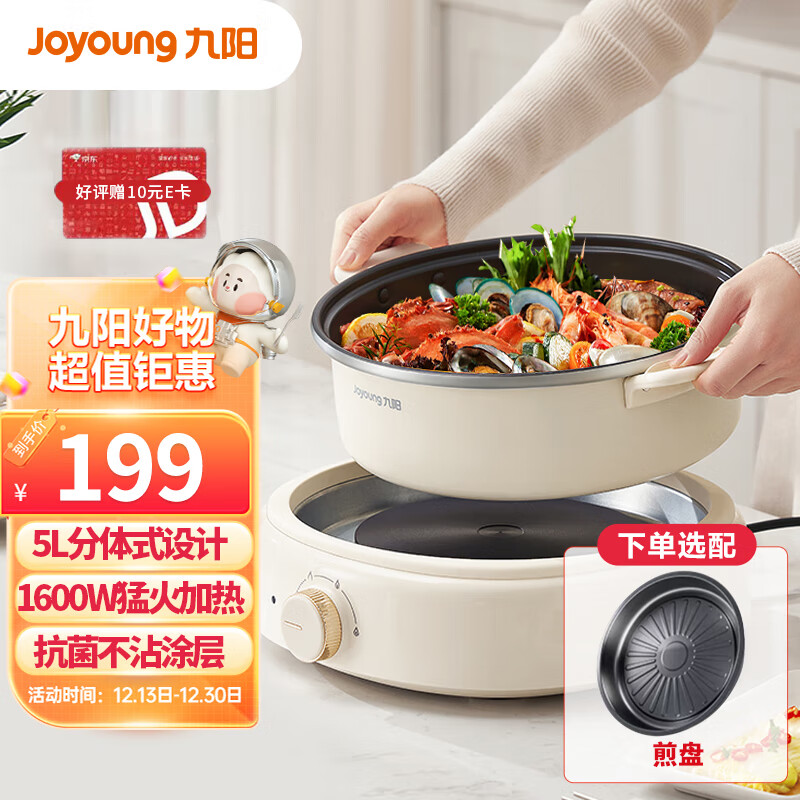 九阳(Joyoung)电火锅分体式可拆洗家用多功能5L大容量火锅专用锅电煮锅电炒锅多功能一体锅不粘锅【单锅款】G525价格:219.00元!